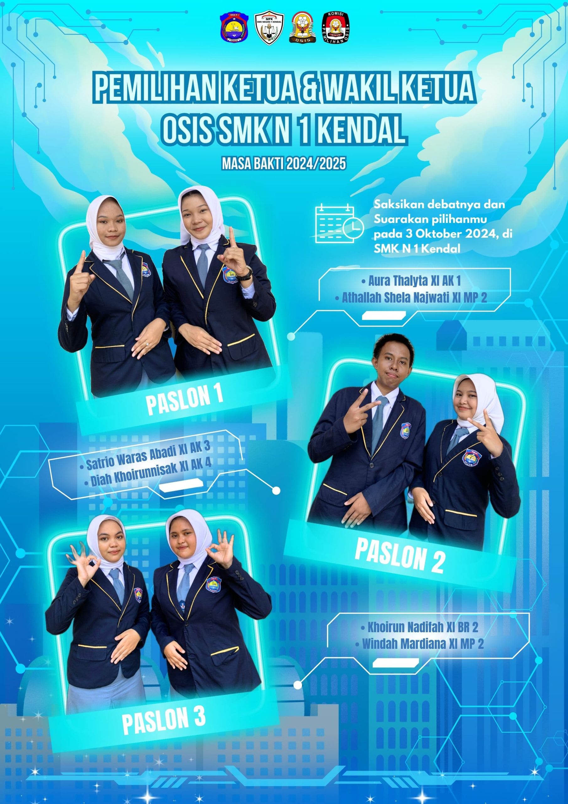 KENDAL-, SMK Negeri 1 Kendal telah sukses menyelenggarakan pemilihan Ketua dan Wakil Ketua Organisasi Siswa Intra Sekolah (OSIS) periode 2024/2025. Kegiatan yang berlangsung pada Kamis, 3 Oktober 2024 ini menghadirkan tiga kandidat yang bersaing memperebutkan kursi kepemimpinan.